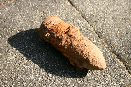 Nicht alles, was man im Vorgarten findet, ist harmlos. Diese Panzer- granate aus dem zweiten Weltkrieg kam beim Einpflanzen einer Rose zum Vorschein.
